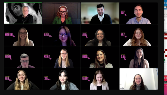 The second day was more formal and allowed pros to review senior work and even interview on the spot. For this event we created Zoom backgrounds with each students custom name.