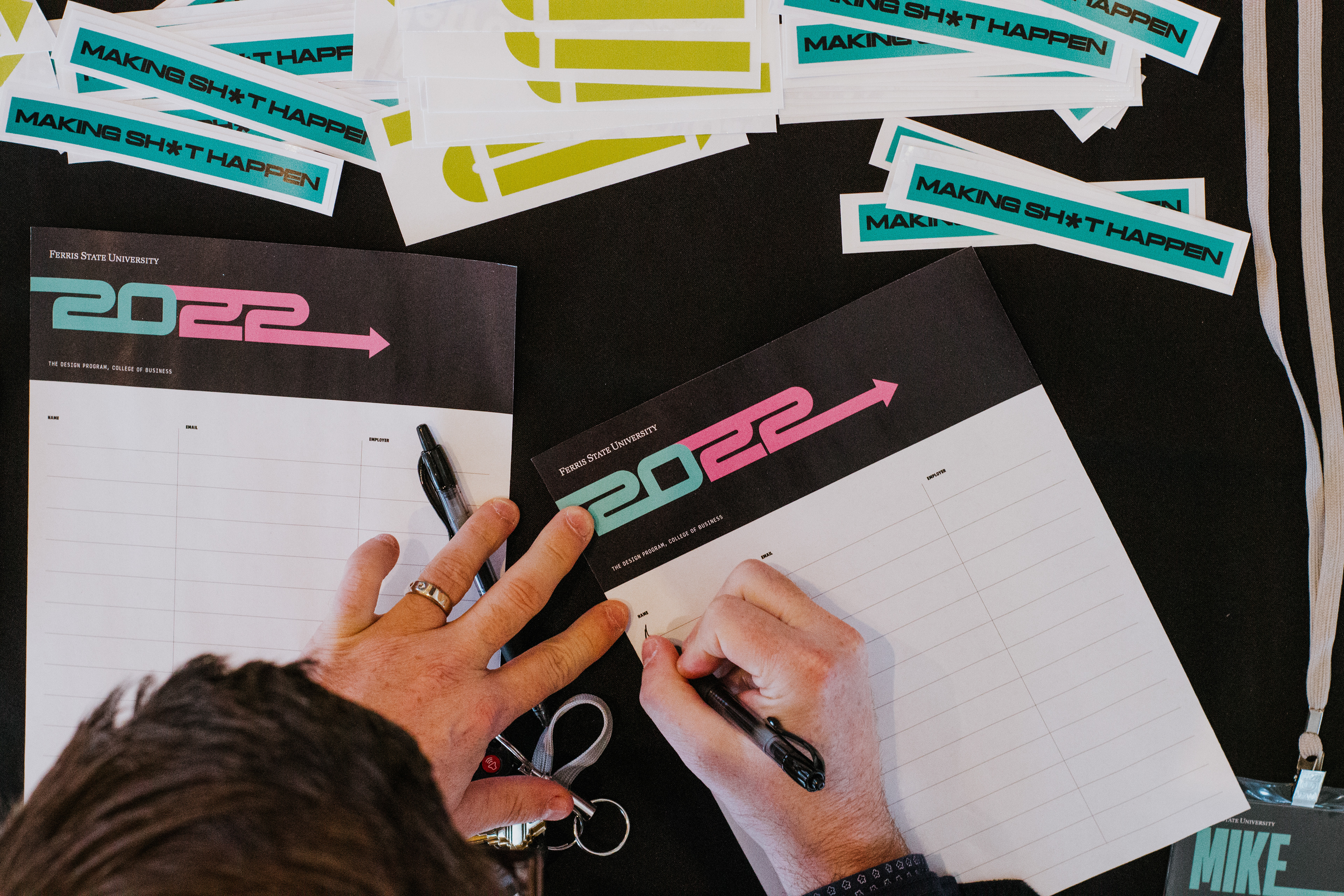 A new event format for the design senior student portfolio review and conference for Ferris State University.